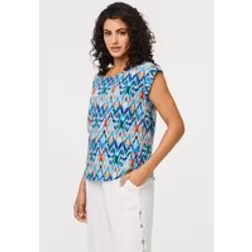 Izabel London Women's Printed Cap Sleeve Relaxed Blouse Top in Blue | Size: 16