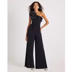 River Island Womens Black Asymmetric Tipped Frill Jumpsuit