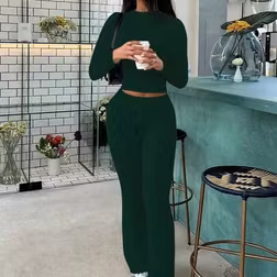 SHEIN Dirty Martini Green Spring Women's Fashionable Belly-Baring Long-Sleeved Tops, Slim-Fitting Lace-Up Flared Pants Sports Suit