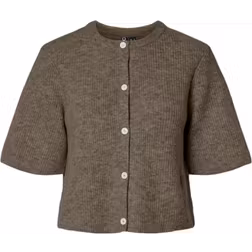 Pieces Short Sleeved Knitted Cardigan - Brown