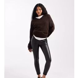New Look Women's Petite Black Faux Leather Leggings - UK 12