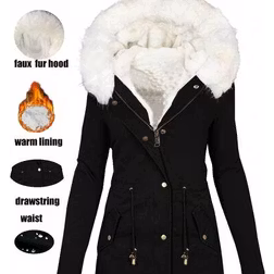 SHEIN Women Winter Coat Long Sleeve Faux Fur Hood Button Down Long Coats Fall Casual Fleece Linning Warm Thermal Jackets Black
