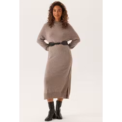 Midi Jumper Dress in Fine Knit with High Neck - taupe - XS