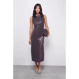 Oasis Faux Leather Whipstitch Detail Sleeveless Midi Dress - Oxblood