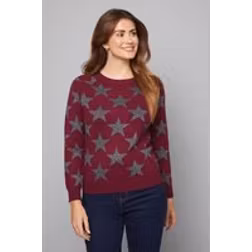Star Motif Crew Neck Jumper - Plum