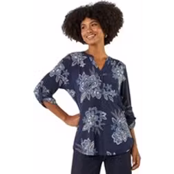 Roman Floral Puff Print Stretch Shirt - Blue