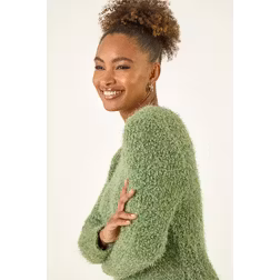 Roman Fluffy Knit Curved Hem Knit Jumper - Green