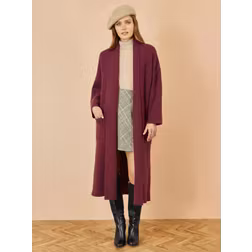 Yumi Women's Burgundy Knitted Maxi Cardigan Sweater With Pockets | Size: XS