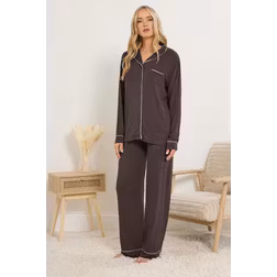 LTS Tall Piped Pyjama Set Chocolate Brown
