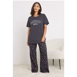 PixieGirl Petite Wide Leg Pyjama Set - Dark Grey
