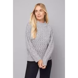Petite Sparkle Pointelle Funnel Neck Jumper - Grey