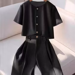 Shein Elegant Round Neck Short Sleeve Shirt Set - Black