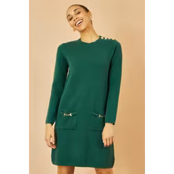 Yumi Women's Green Knitted Tunic Dress With Gold Hardware Details | Size: Small