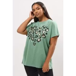 Yours Plus Size Green Heart Print Tshirt Size 16