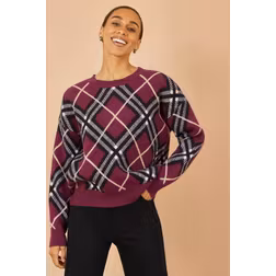 Yumi Burgundy Argyle Check Relaxed Jumper