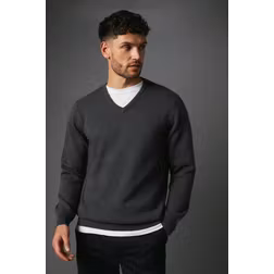 Maine Mens Premium Pure Cotton V-neck Jumper - Grey - Size Small