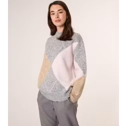 Blue Vanilla Grey Argyle Knitted Crew Neck Jumper -