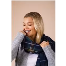 SVNX Unisex Tartan Print Scarf In Navy - One Size
