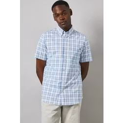 Debenhams Men Blue Check Short Sleeve Shirt - Maine Blue