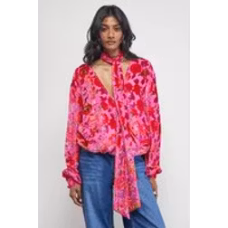 Warehouse Women's Devore High Neck Wrap Front Blouse - Pink