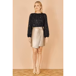 Yumi Faux Leather Wrap Mini Skirt - Gold