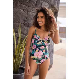 M&Co Womens M&Co Black Tropical Print Swimsuit Size 20