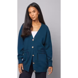 Wallis Teal Casual Jumpers Tipped Button Through - Teal