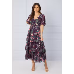 Wallis Floral Print Ruffle Midi Dress - Purple