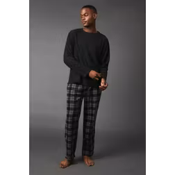 Debenhams Men's Black Fleece top With Check Pyjama Set | Size: Large