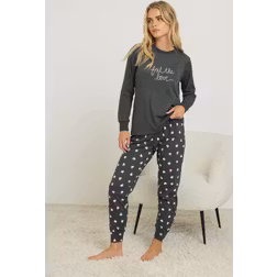 Pixiegirl Petite Women's Grey 'Feel The Love' Heart Slogan Pyjama Set Size 6-8