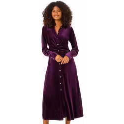 Velvet Button Shirt Stretch Midi Dress - Purple - 16
