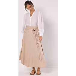 Apricot Women's Linen Blend Hanky Hem Midi Skirt in Stone | Size: 16