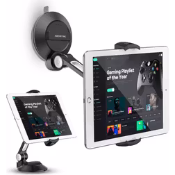 AboveTEK Tablet Stand with Suction Cup, Adjustable Tablet Holder Mount for Desk, Car Windscreen, Mirror or Glass – Fits 4”-11” Tablets & Phones, iPad Mount for Home, Office(Black)