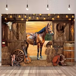 SHEIN 1pc Western Cowboy Background Banner, Polyester Material, Multi-Size, Wild West Stable Country Retro Farmhouse Wooden Door Photography Background, Par