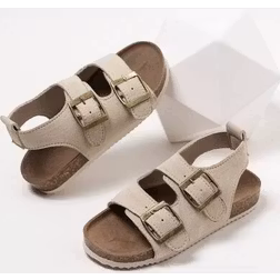 SHEIN 1 Pair Of Children's Fashionable Buckle Heart Decorated Flat Cork Sandals, Summer Vacation Style Beach Outdoor Casual Girls' Sandals,