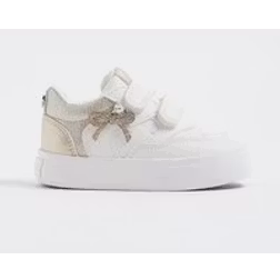 River Island Mini Mini Girls Bow Charm Plim Shoes - White, White, Size 8 Younger