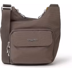 You close this crossbody bag with a zipper. It only comes in one colour, brown, but it does look quite neat.