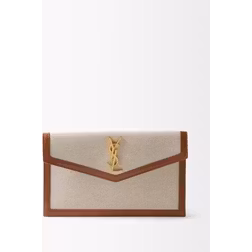 Uptown Canvas Leather-Trim Pouch - NATUR/BEIGE/BRICK - This Saint Laurent pouch offers a minimalist take on the classic clutch. Cut from textured canvas and smooth leather to form an envelope silhouette, it's a modern style moment to team with any look.