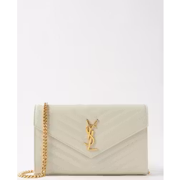SAINT LAURENT - Cassandre Chain Matelassé Textured-leather Wallet - Cream - One size