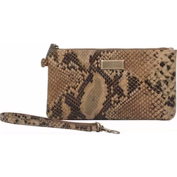 'KAREN' Tan Snake Print Real Leather Wristlet Clutch Bag - Orange (One Size)