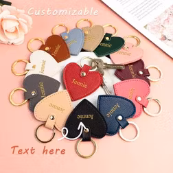 SHEIN 1pc Customized Gold Stamping Name Letter Design Keychain Heart Shaped PU Leather Multi-Color Vintage Vibe Elegant & Cute Suitable For Couples As Gift