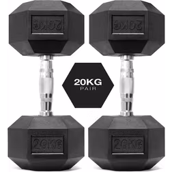 20kg x 2 Pair Hex Dumbbells Rubber Encased Pair of Weights
