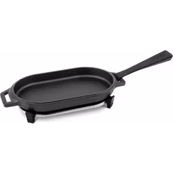 ooni Cast Iron Sizzler Pan - Griddle Frying Pan, 31 cm x 16 cm Sizzler Plate with Removable Handle and Stainless Steel Trivet, Pre-Seasoned Non-Stick Oven Safe Cookware, Pizza Oven and BBQ Accessories