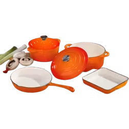 Enamel, Cast IronNo. of Casseroles: 2 pcs, No. of Pans: 1 pcs, No. of Lids: 2 pcs