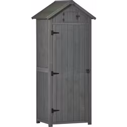 Outsunny Wooden Garden Storage Shed Tool Storage Box - 77 x 54 x 179 cm - Grey | TJ Hughes