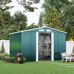 Living and Home 8 x 6 Ft Metal Shed Garden Storage Shed Apex Roof Double Door With Base Foundation, Dark Green (Building Area )