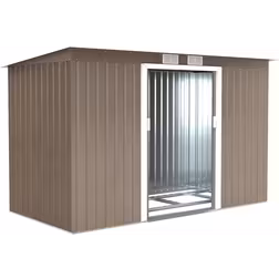 OutSunny 9 x 4FT Metal Garden Storage Shed w/ 2 Door, Light Grey Wood Grain (Building Area )