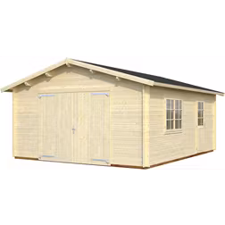 Palmako Roger 4.5m x 5.5m Extra Wide Log Cabin Single Garage (44mm) - Double Doors