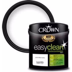 Crown Paints Easyclean Matt Emulsion - Washable & Wipeable Multi Surface Interior Paint - Pure Brilliant White - 2.5L, White