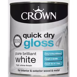 Crown Quick Dry Gloss Wood Paint, Metal Paint Brilliant White 0.75L